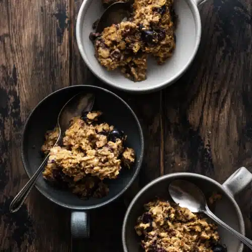 Blueberries: I used fresh berries but a bag of frozen blueberries is just as good. So, if you don’t have fresh, use frozen! If you don’t have blueberries, you can use raspberries. You can also use chopped apple or pear.