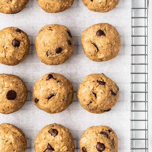 Let them cool completely to firm up. The cookie dough balls should be browned and feel firm when they’re done but will continue to firm as they cool. These are best enjoyed at room temp or even chilled!
