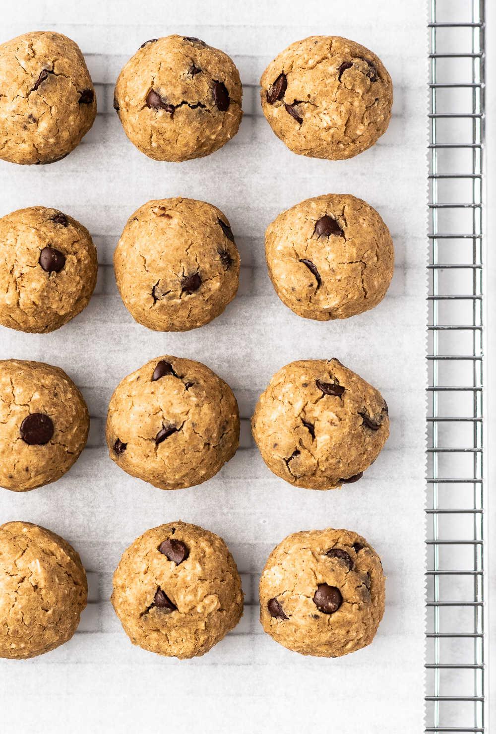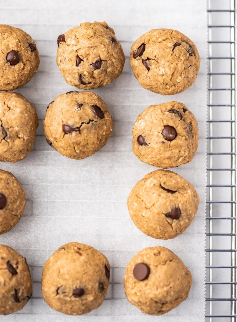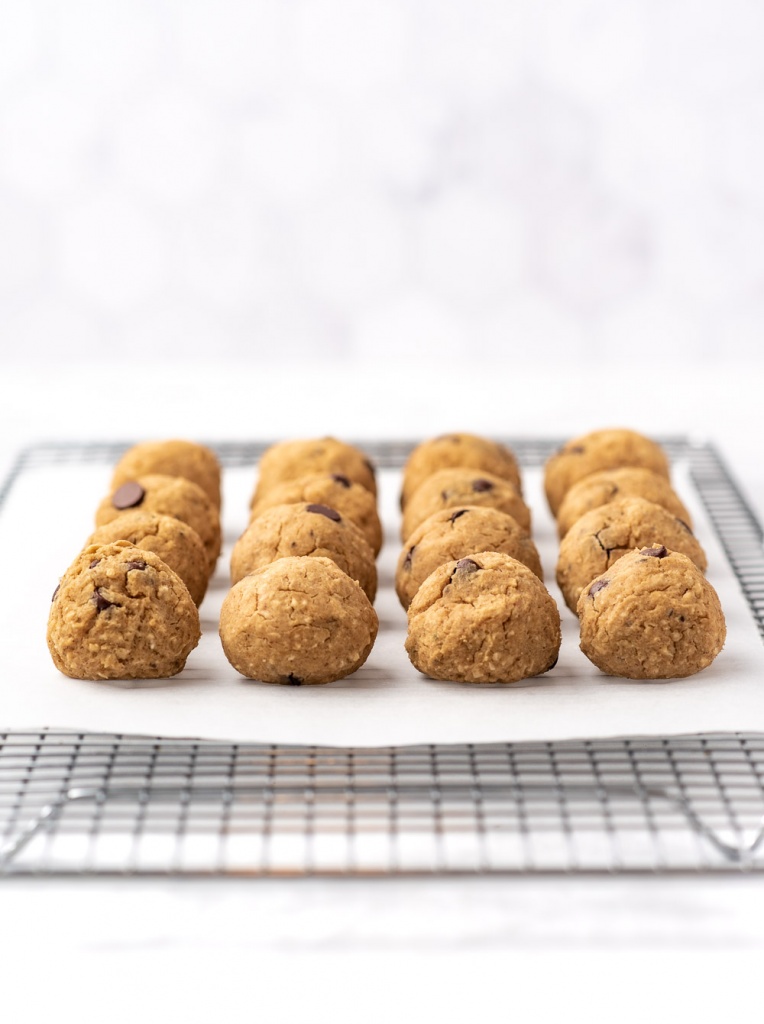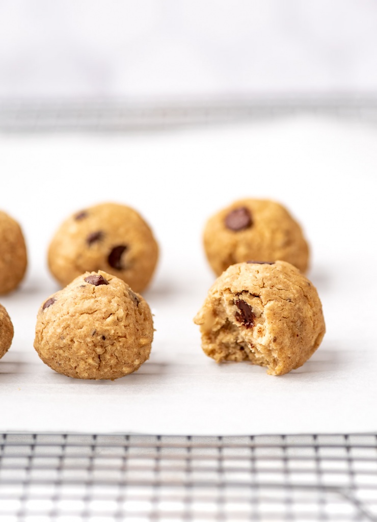 Let them cool completely to firm up. The cookie dough balls should be browned and feel firm when they’re done but will continue to firm as they cool. These are best enjoyed at room temp or even chilled!