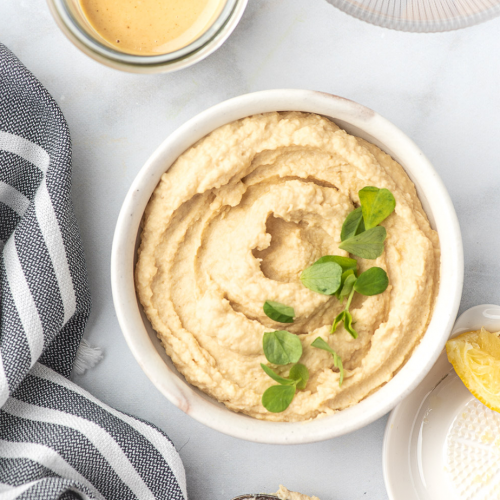Why is this a basic, must-have recipe? Because store-bought hummus is full of crap (canola oil, preservatives, etc) and doesn’t taste anywhere near as good as homemade. And because hummus is a chameleon – it can make an appearance at any meal, breakfast through night-time snack. It’s also nutritious! It provides a ton of protein, fiber, healthy fats and is filling and satisfying.