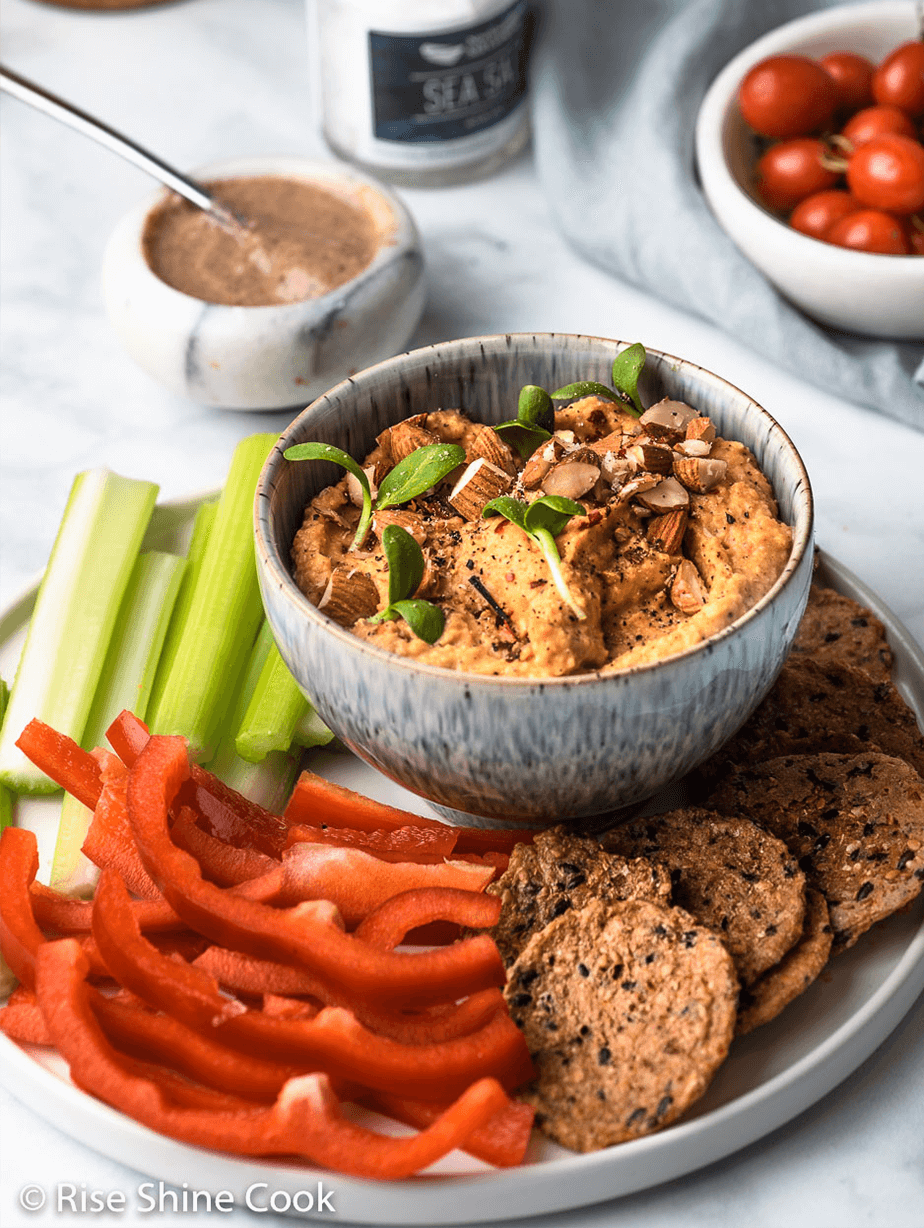 I also like to get a little cray with my hummus. My latest version is an oil-free Roasted Carrot Hummus with a little kick and a lotttt of flavor.