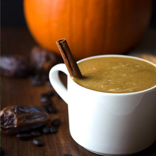 Dates and real pumpkin puree make this latte sweet and also act as a thickener.