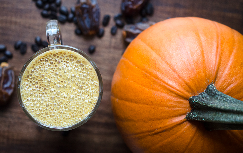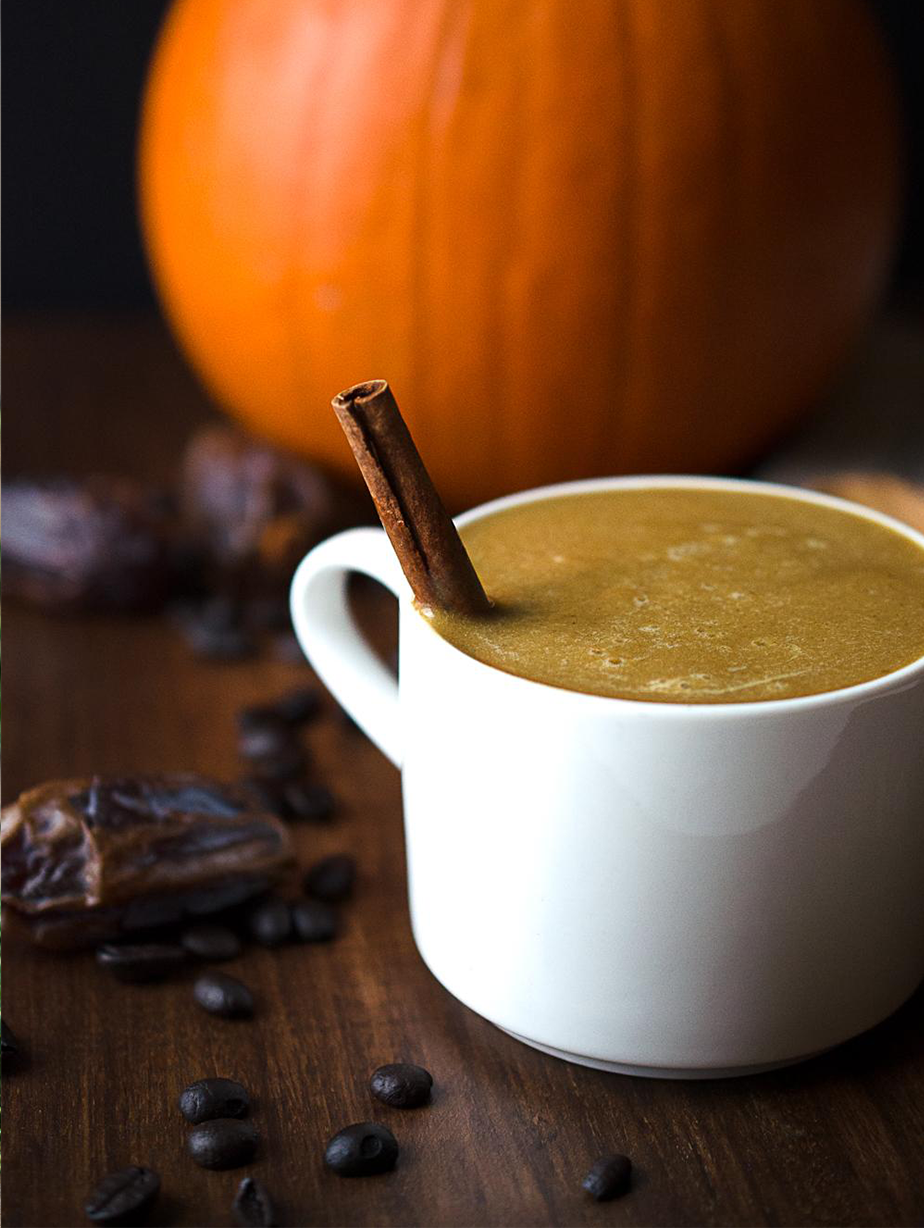 Dates and real pumpkin puree make this latte sweet and also act as a thickener.