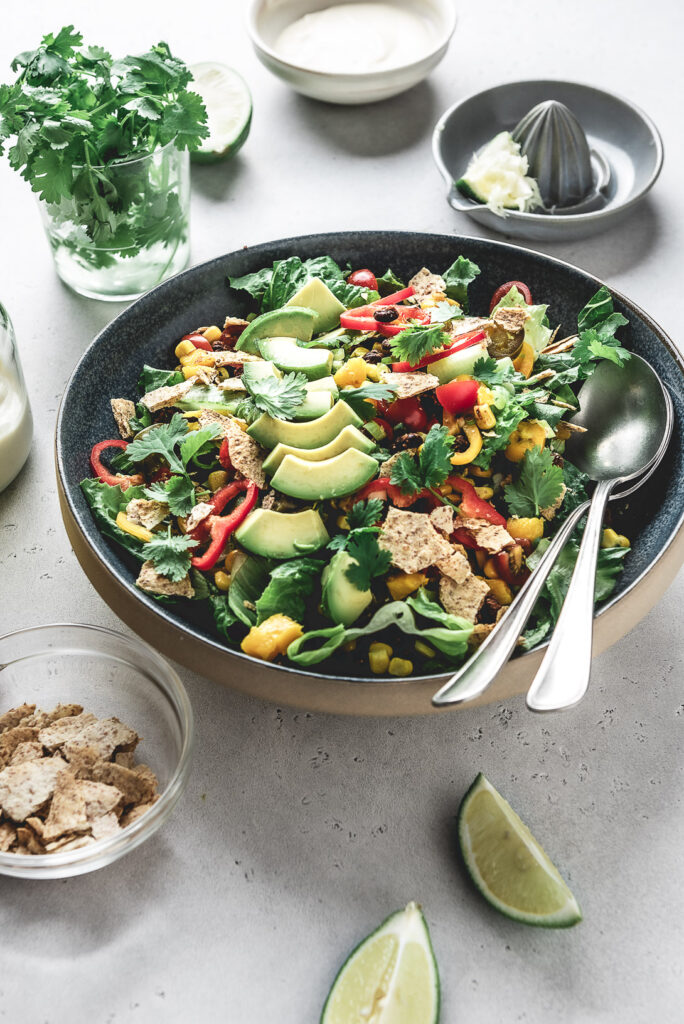 This vegan taco salad is all about the toppings, so don’t skimp! I’d even suggest going all out and piling the toppings high!