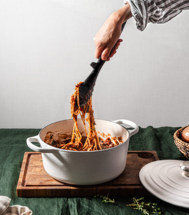 Pasta: You can use whatever pasta you love. I like brown rice spaghetti for this dish, but you can use whole wheat, quinoa, or a legume-based pasta. The only note is that other pastas may require more or less liquid to cook properly. As long as the pasta is fully submerged while cooking, it will work out fine.