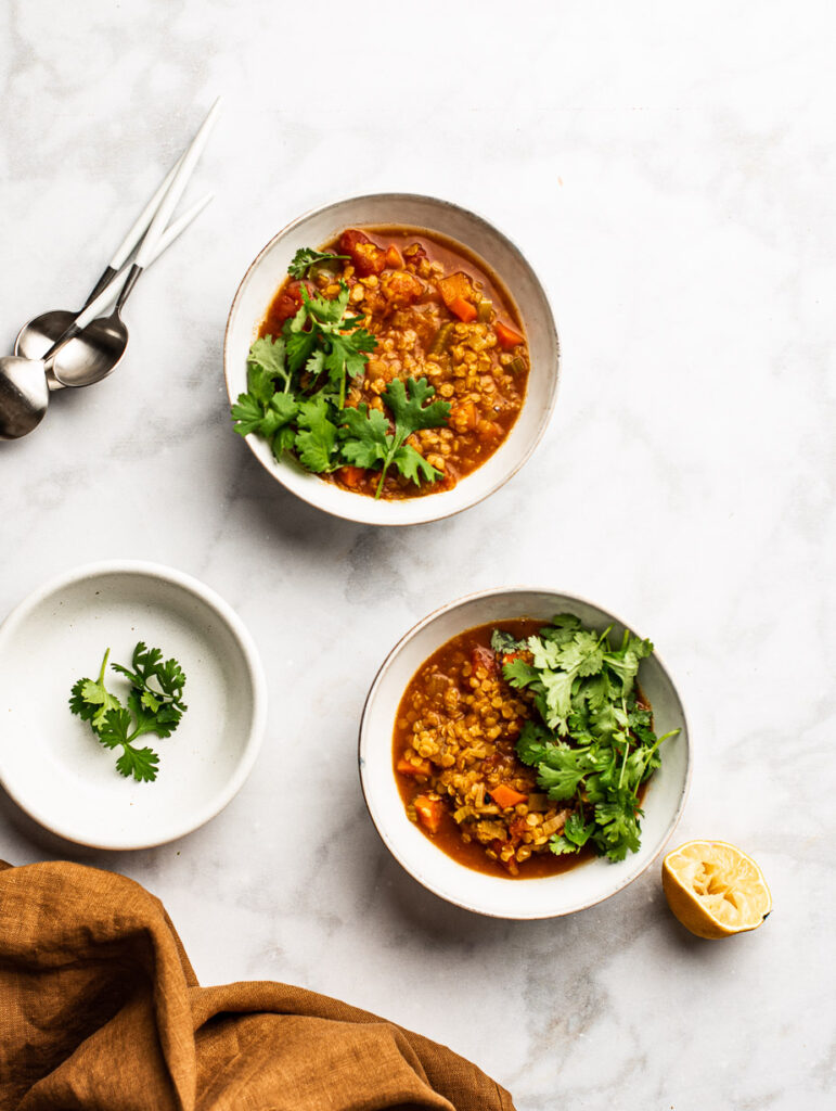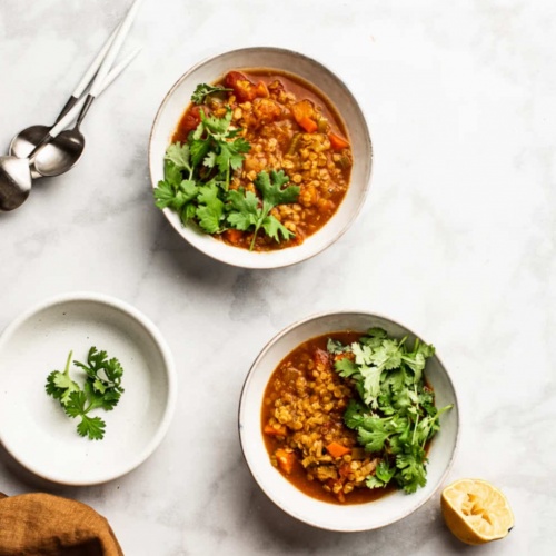 I made this for my mom and we both agree: it is wonderful, tasty, comfort food. The cilantro and lemon at the end adds great freshness. We topped it with a little bit of feta and had crispy pesto toast with it. Mmm! It tasted even better when we had it again the next day. With the one pot to cook in, it made dishes simple too! Will absolutely be making this again.
